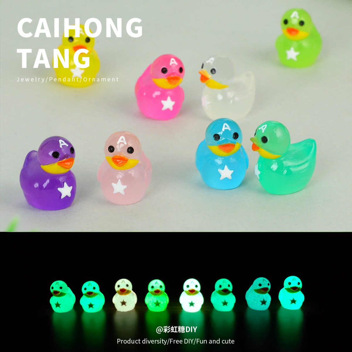ミニチュア樹脂立体 A 字型発光アヒル DIY クリエイティブ立体ペンダントキーホルダー素材新製品卸売