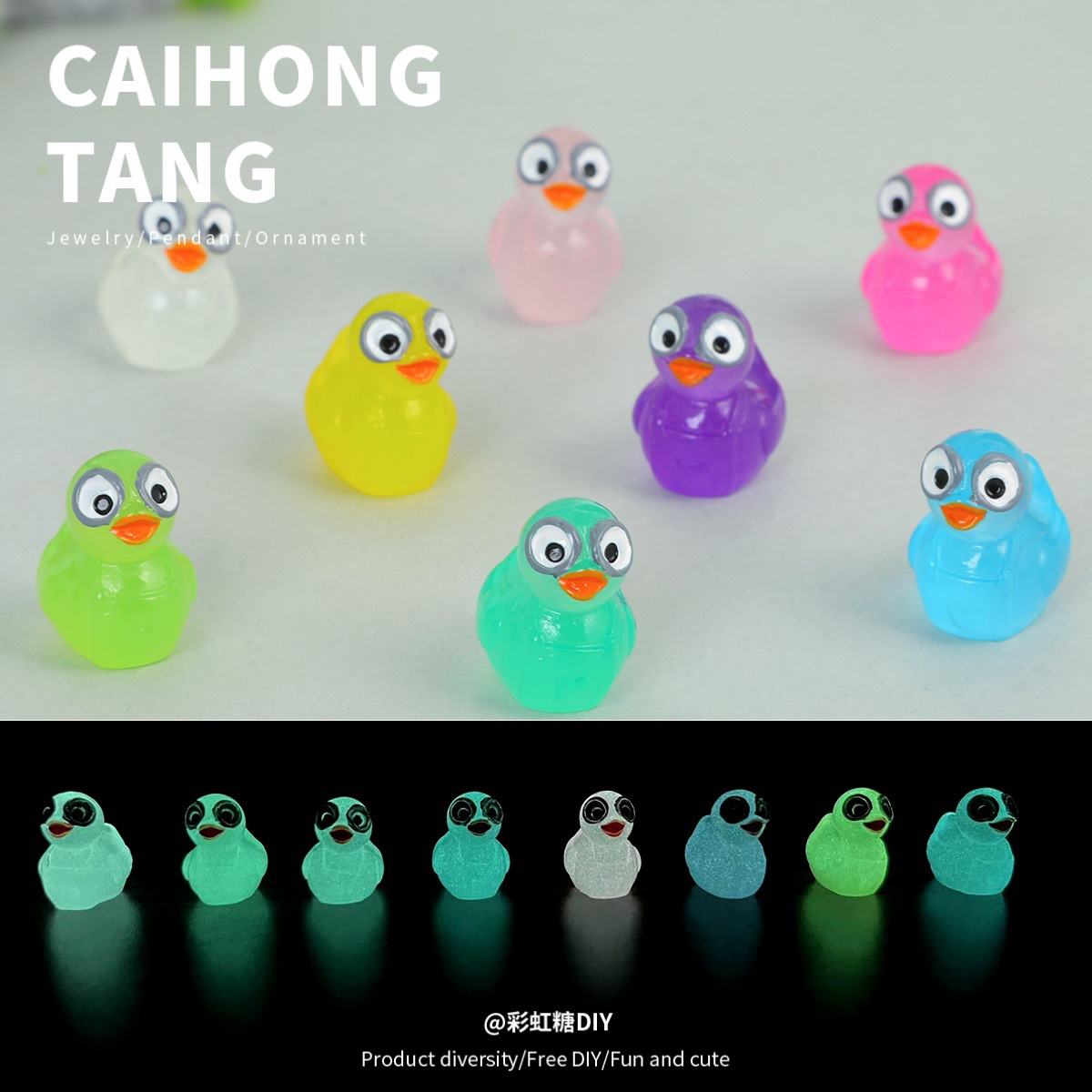 ミニチュア樹脂面白い発光大きな目のアヒル新製品卸売 DIY クリエイティブ立体ペンダントキーホルダー素材