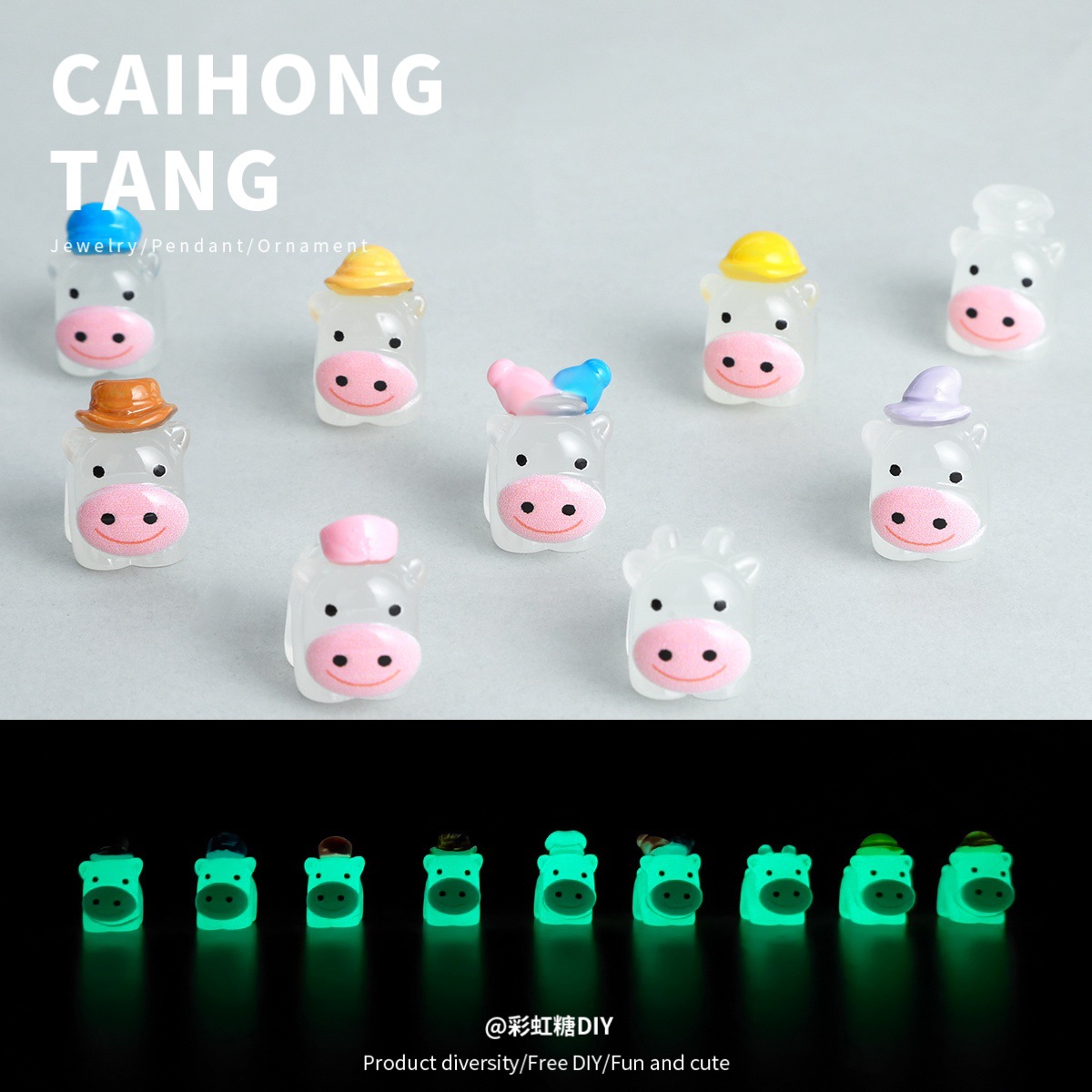 発光プロフェッショナル小さな牛人形 DIY ジュエリー卸売キーホルダーペンダント携帯電話ケース下駄アクセサリー卸売