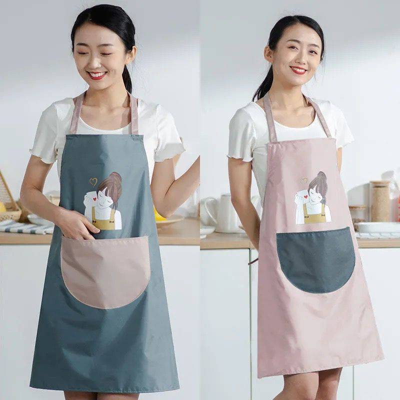新型防水エプロン韓国版ファッション家庭用キッチンウエスト防油拭きエプロン女性韓国版ファッションエプロン