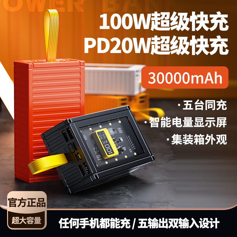 120W超急速充電透明30000ミリアンペア充電宝大容量屋外中継移動電源ランプ付き