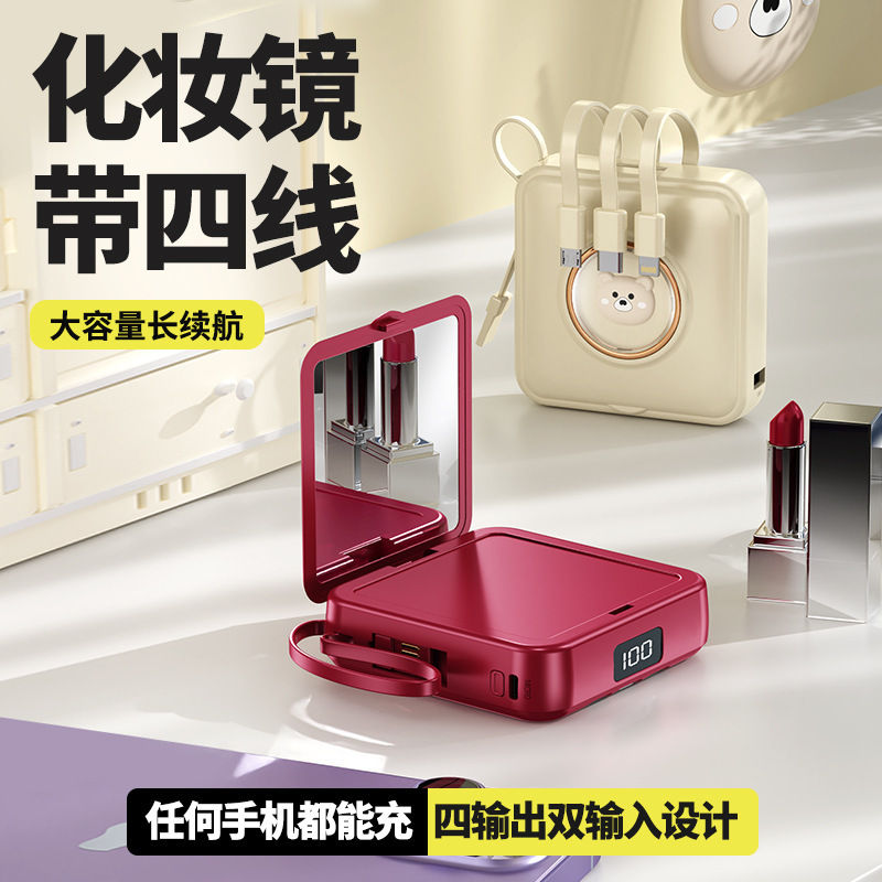 充電宝高颜値化粧鏡小型携帯付き四線多充電大容量20000ミリアンペア移動電気