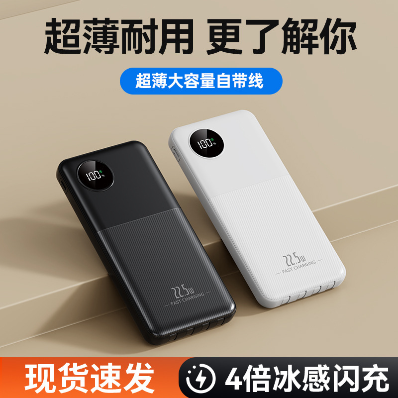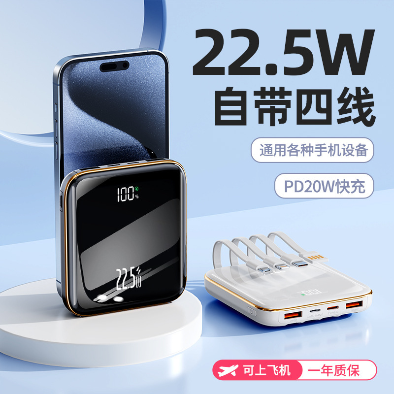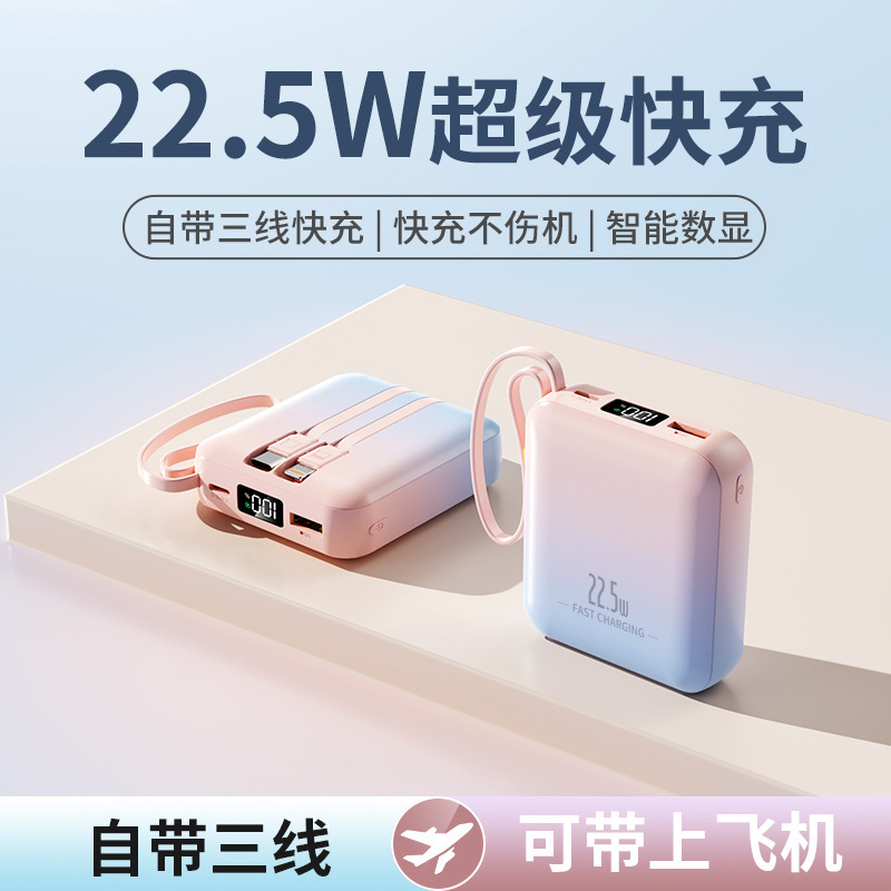 モバイル電源小型ミニ22.5W急速充電帯線充電宝鏡面デジタル超薄型プレゼント印刷