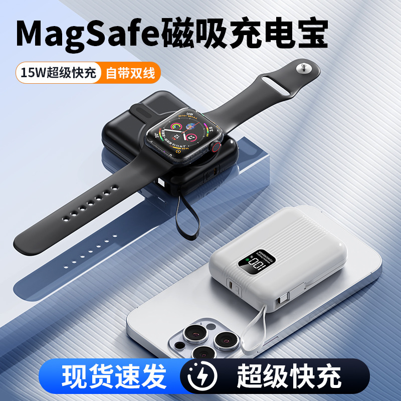 移動電源ミニ磁気吸引新型無線充電宝超速充ケーブル22.5w携帯充電可能腕時計
