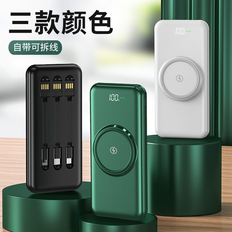 新自帯線無線共有充電宝20000ミリアンペア大容量携帯電話無線移動電源急速充電
