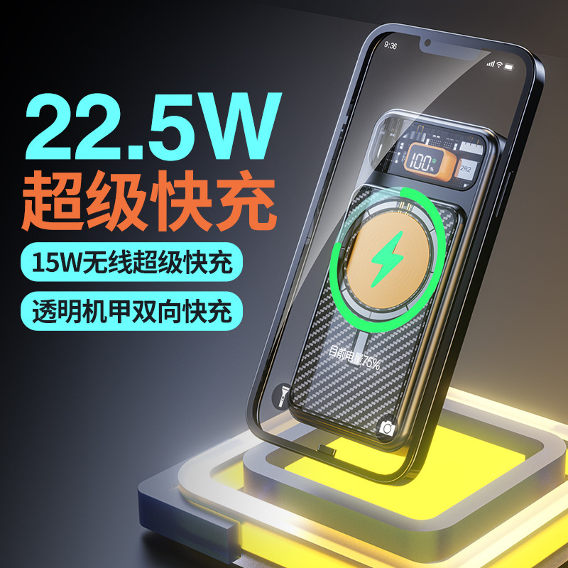 ディザトーン爆発金透明磁気吸引充電宝工業風移動電源無線充電大容量10000ミリアンペア