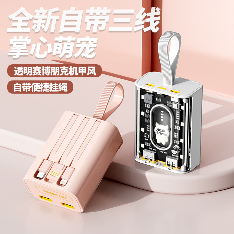 ディザトーンの爆発的な透明な自己帯線充電宝パンク機甲風ポータブル10000mah急速充電モバイル電源