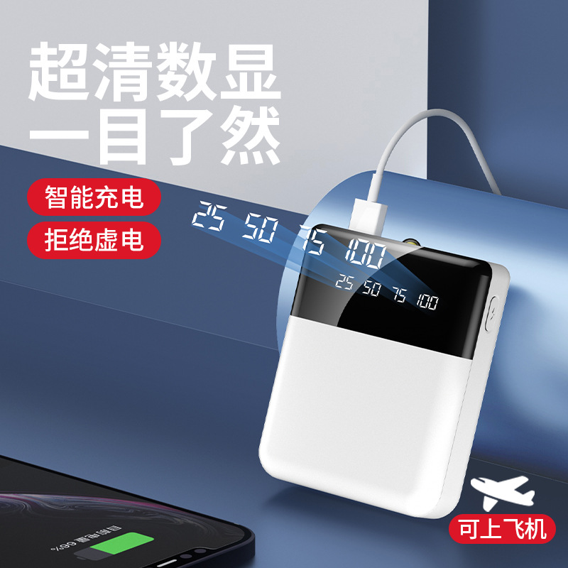2025年新型ミニ内蔵ケーブル付きモバイルバッテリー、ストラップ、LEDライト、デジタルディスプレイ搭載、20000mAh大容量