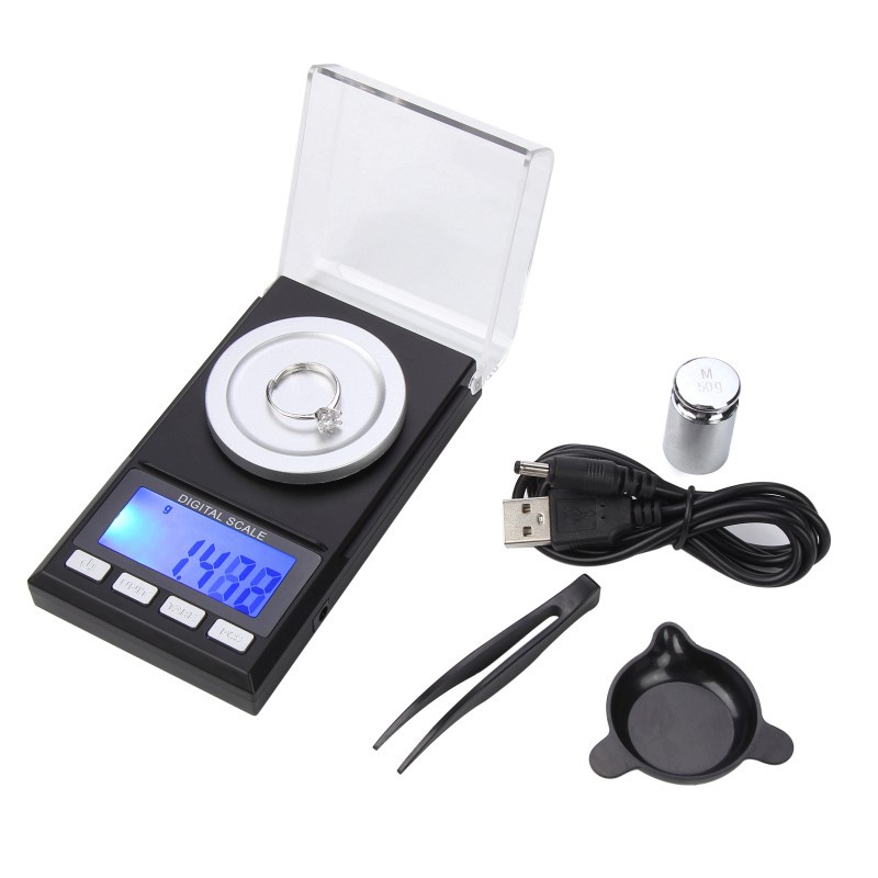小型グラム秤50g/0.001gジュエリー秤ゴールドジュエリー千分の1電子秤ミニスケール天秤