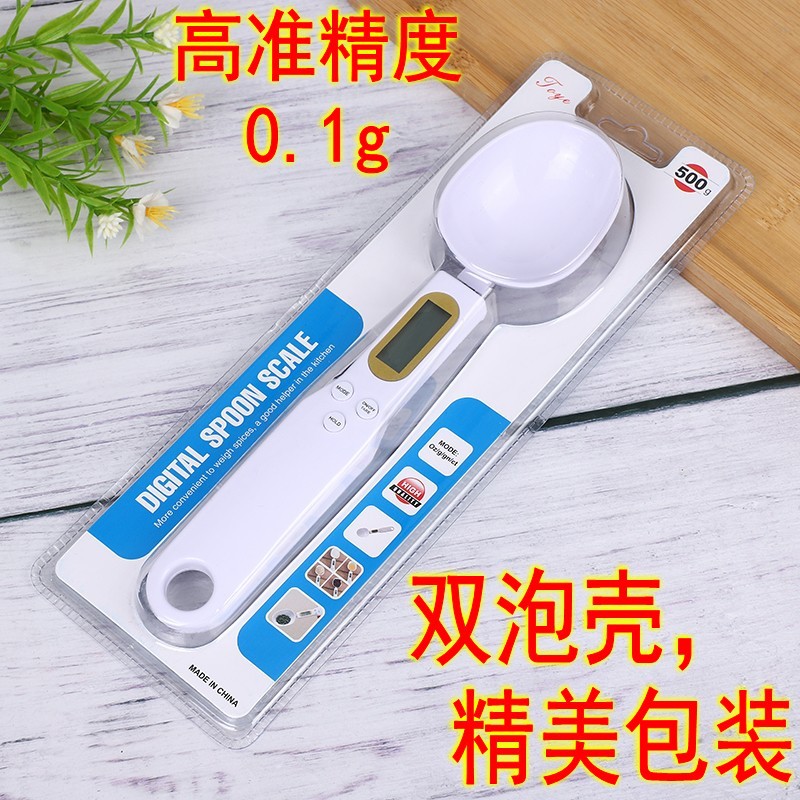 クロスボーダーのスプーンは電子はかりをはかります。