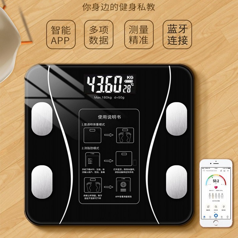 26cm健康秤体重計bluetooth接続体脂肪秤app測定体データ体脂肪計180kg体重計