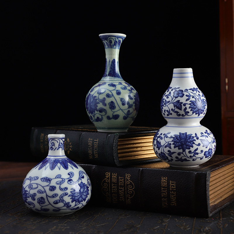 青花磁器花瓶中国式模造古客間陶磁器家庭微景観撮影道具生け花ミニ小置物