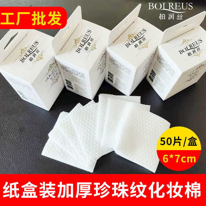 紙箱入りパール柄メイク落としコットンパッド 80g ソフトで糸くずの出ない美容コットンパッド 1 箱あたり 50 枚卸売