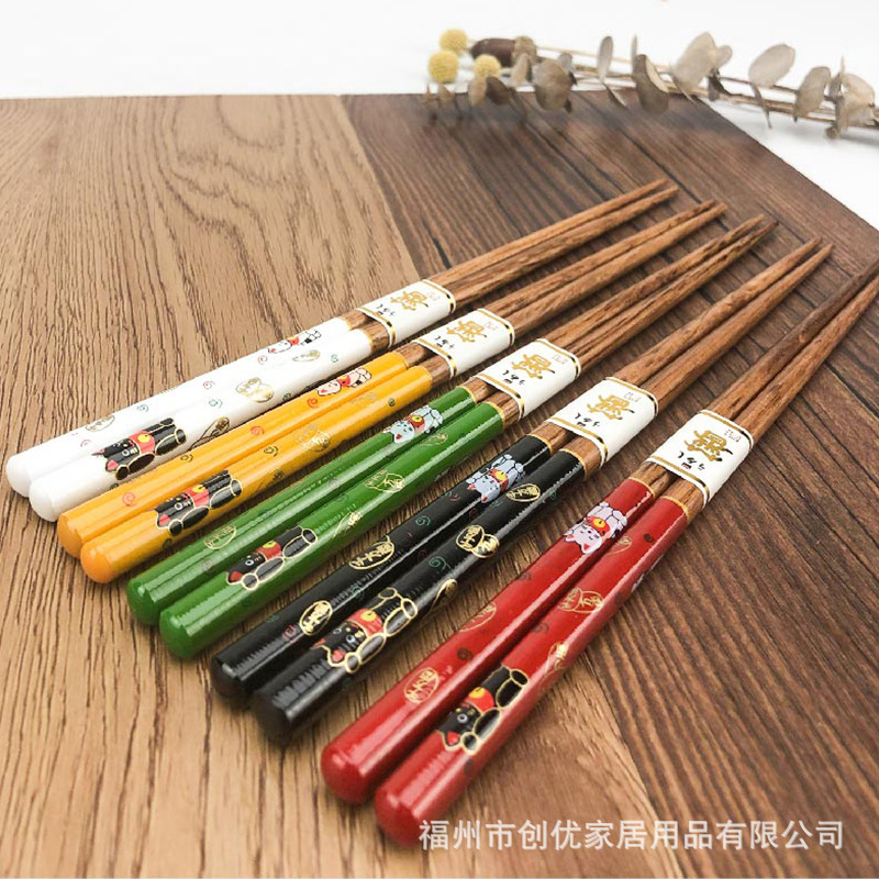 1人1本箸 和風招き猫5本箸セット 木製箸 ギフトボックス メーカー卸売 家庭用高価値箸