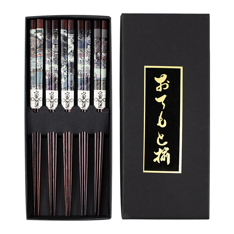 和風九本焼きプリント箸10膳入りギフトボックス、研磨仕上げの高級ギフト箸、日本への輸出ギフト用