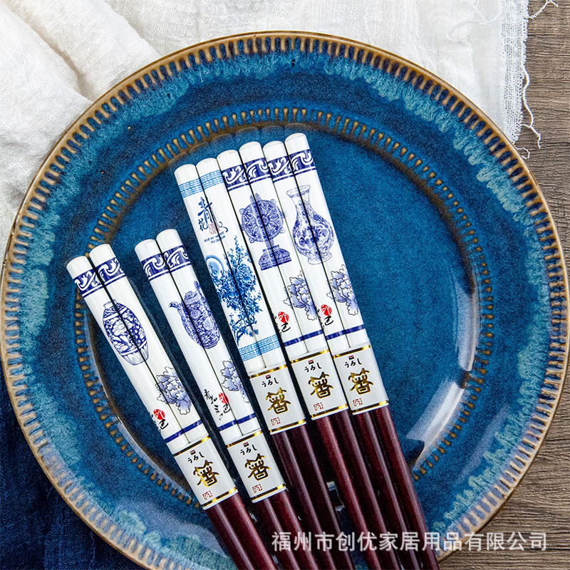 青花磁器プリント国風箸ギフトボックス家庭用高級感箸一人箸高級陶磁器箸食器