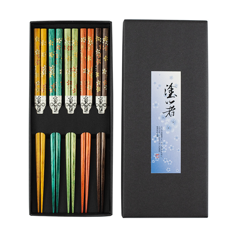 和風五彩桜箸 家庭用 高級感 軽奢 和風尖頭木製ギフト箸 食器 記念品