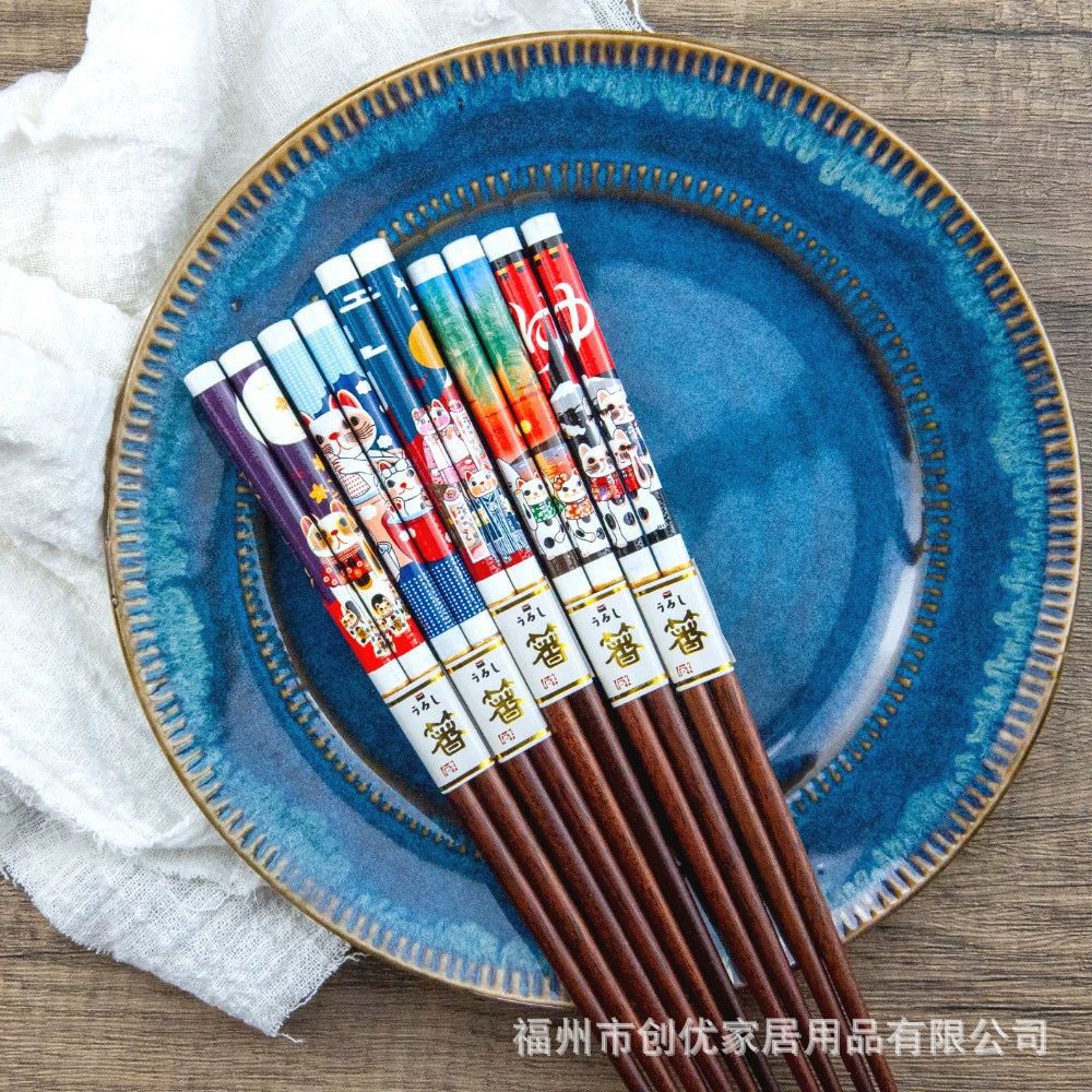 招き猫プリント箸セット家庭用高級感箸一人箸和式陶磁器食器高級木箸