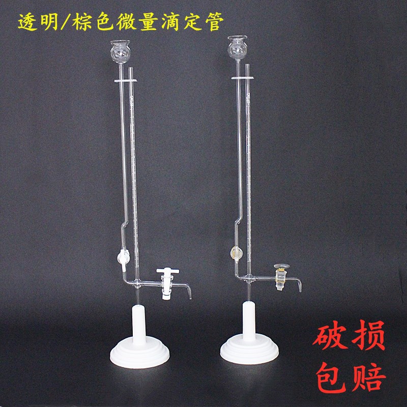 ガラス微量滴定管1 2 3 5 10ml茶色ピストンテフロン滴定管座式クリップ式酸アルカリ共通