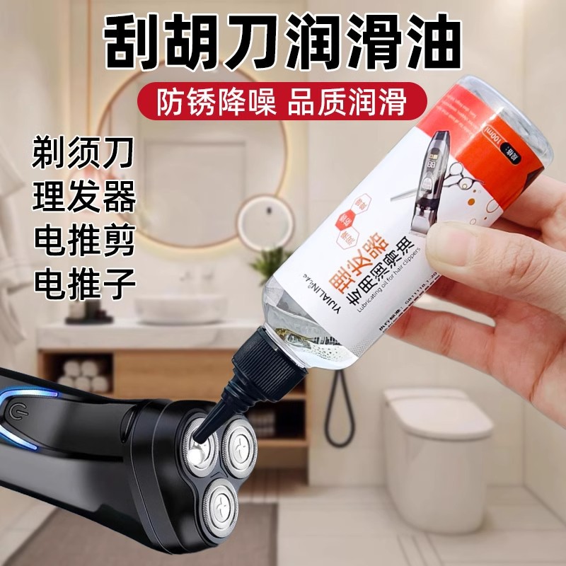 髭剃り専用の潤滑油の髭剃りの電気は切って騒音を抑えます。