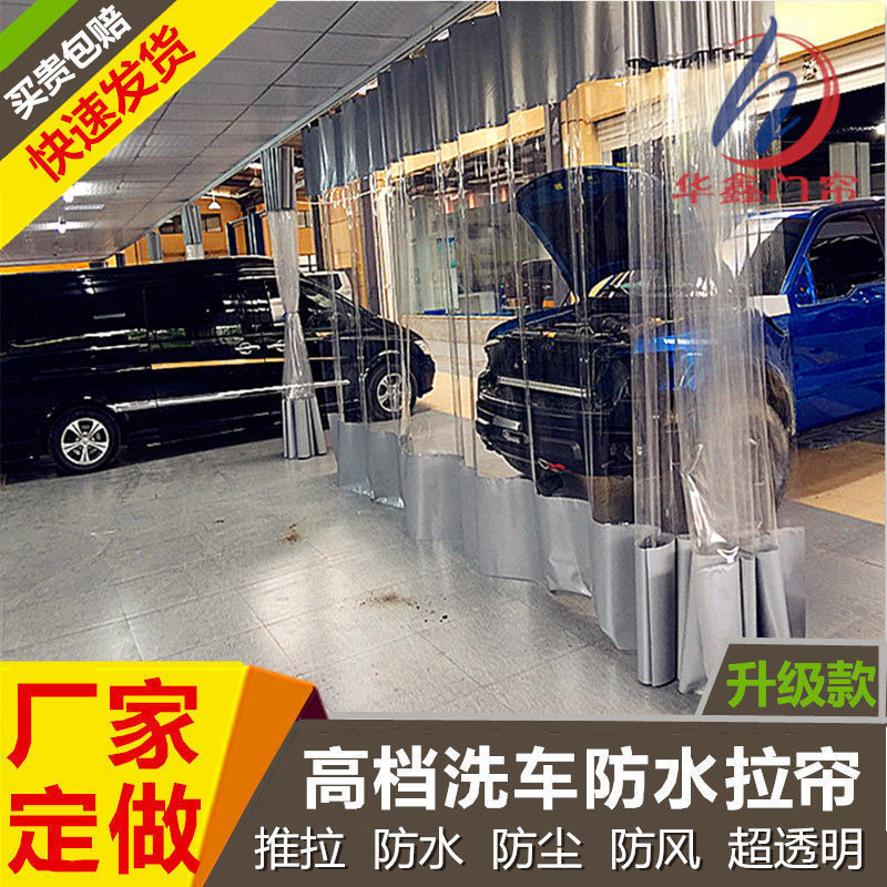 洗車店防水カーテン自動車4店工場遮断防風防塵押し引き透明ステーション隔水カーテン