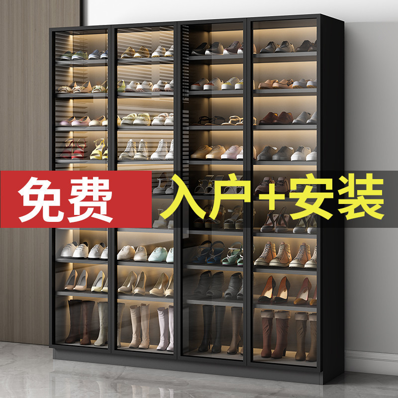 軽い豪華な下駄箱家庭用の入り口は現代的でシンプルで大容量の収納ガラスドアの玄関棚が一体で壁に寄りかかっています。