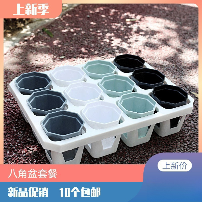 園芸多肉植木鉢創意生石花肉八角盆ブラケットセットプラスチックシンプル緑植花盆栽器