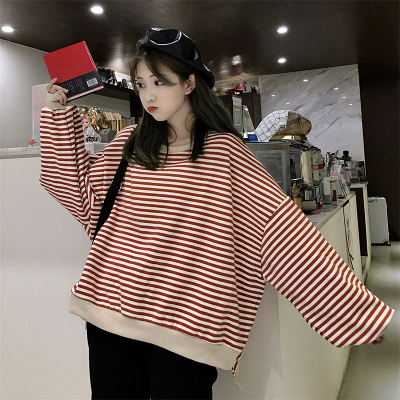 丸首の衛衣の女性の秋の2022の新型のゆったりした韓国版のストライプの頭の上着の長袖のコートのinsの潮の大きいサイズ