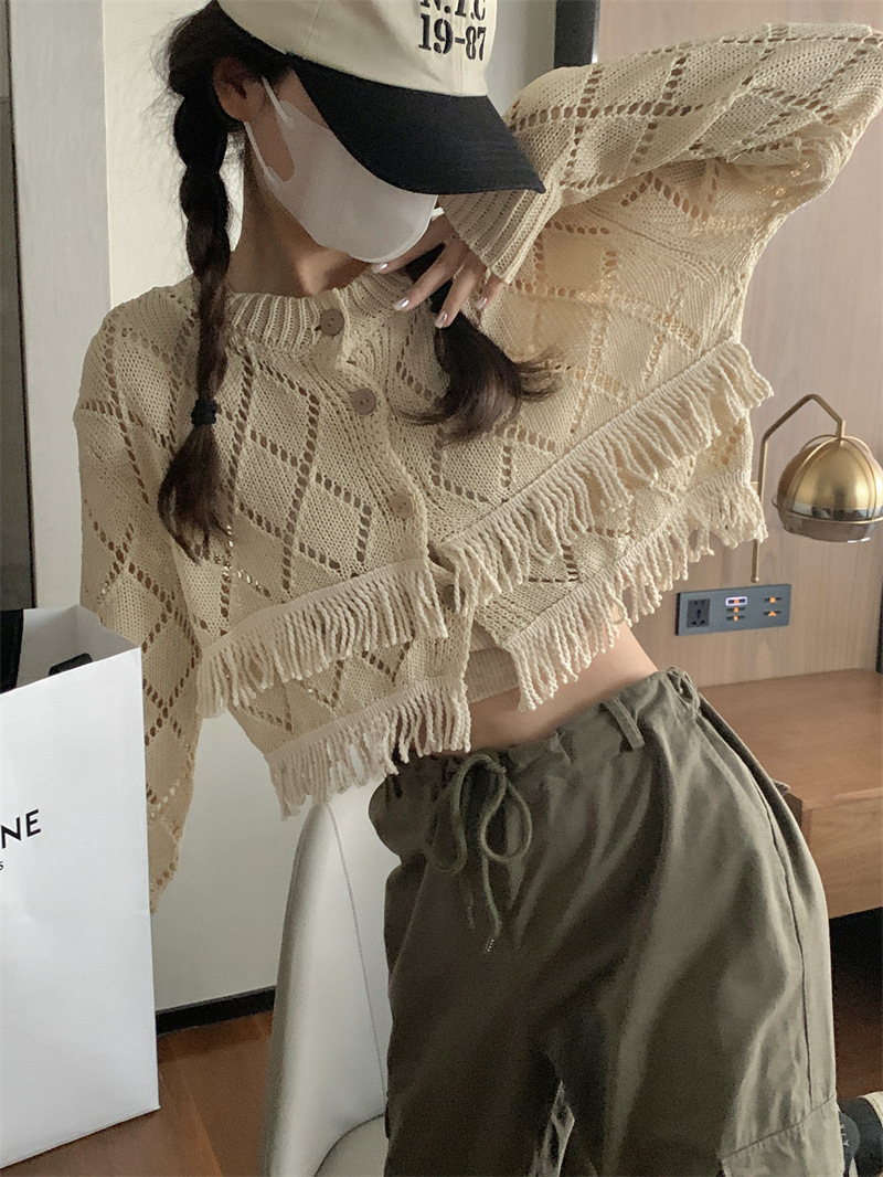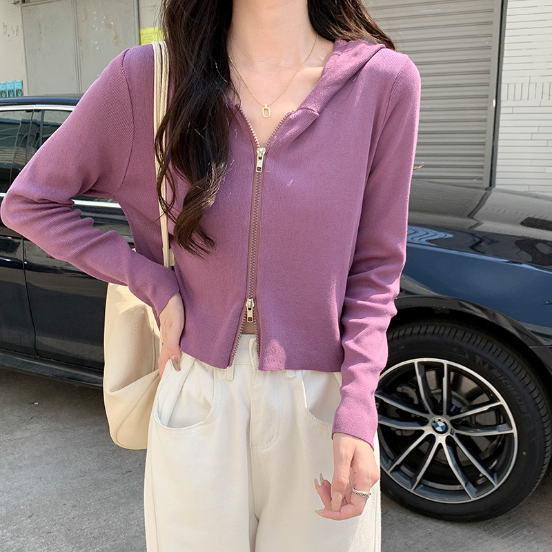 帽子付きニット服2022早秋新作上着デザイン感小衆ショートファスナー長袖カーディガンコート