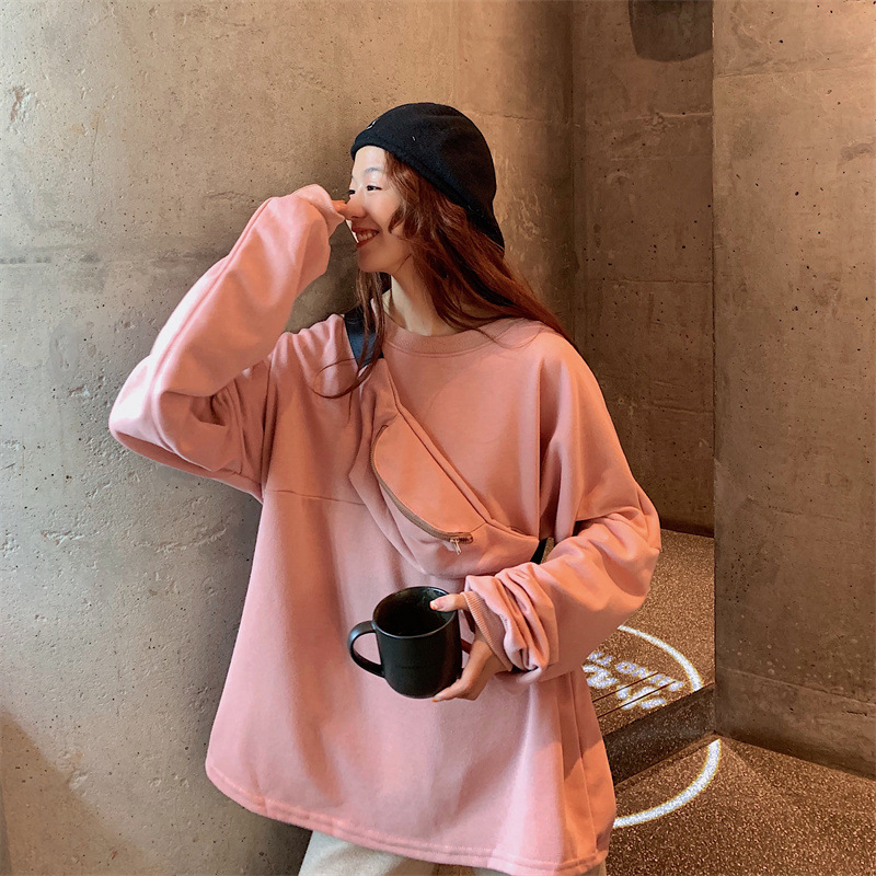 6535魚鱗春秋装太ったmm大サイズ女装ゆるいガーディアン + ウエストバッグ丸首カバー