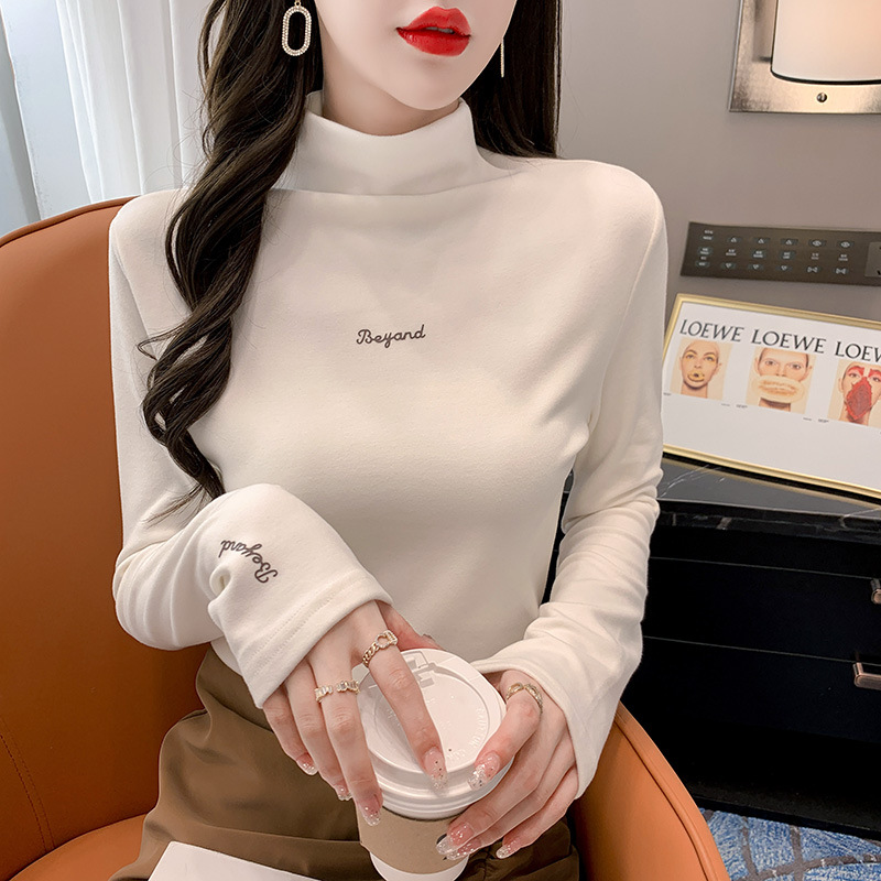 280グラムの両面の徳絨毛の半高襟の底のシャツの女性の中に秋冬の洋風とベルベットの厚い保温の上着の卸売りを掛けます。