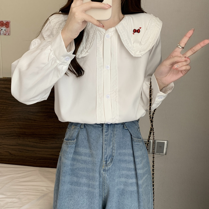 実際に長袖のシャツの女性の新型の2022子供の襟のゆったりした上着の気質のカジュアルでやせている刺繍のシャツの潮を現します。
