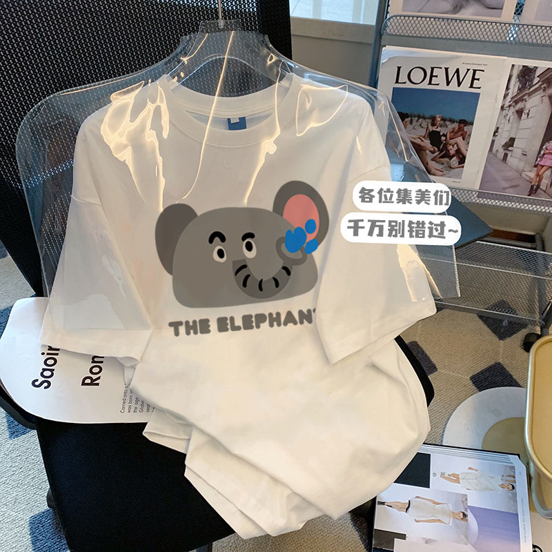 卸売り純綿ネット紅韓国版正肩半袖tシャツ女性夏アニメ小象小衆高級感茶系上着