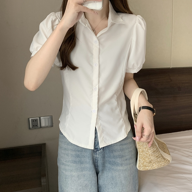 卸売り2022夏の新型純色韓国版修身polo襟半袖シャツ女性夏デザイン感服