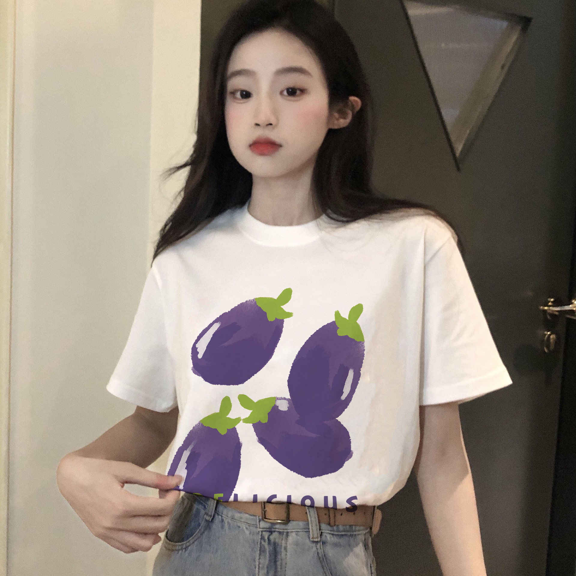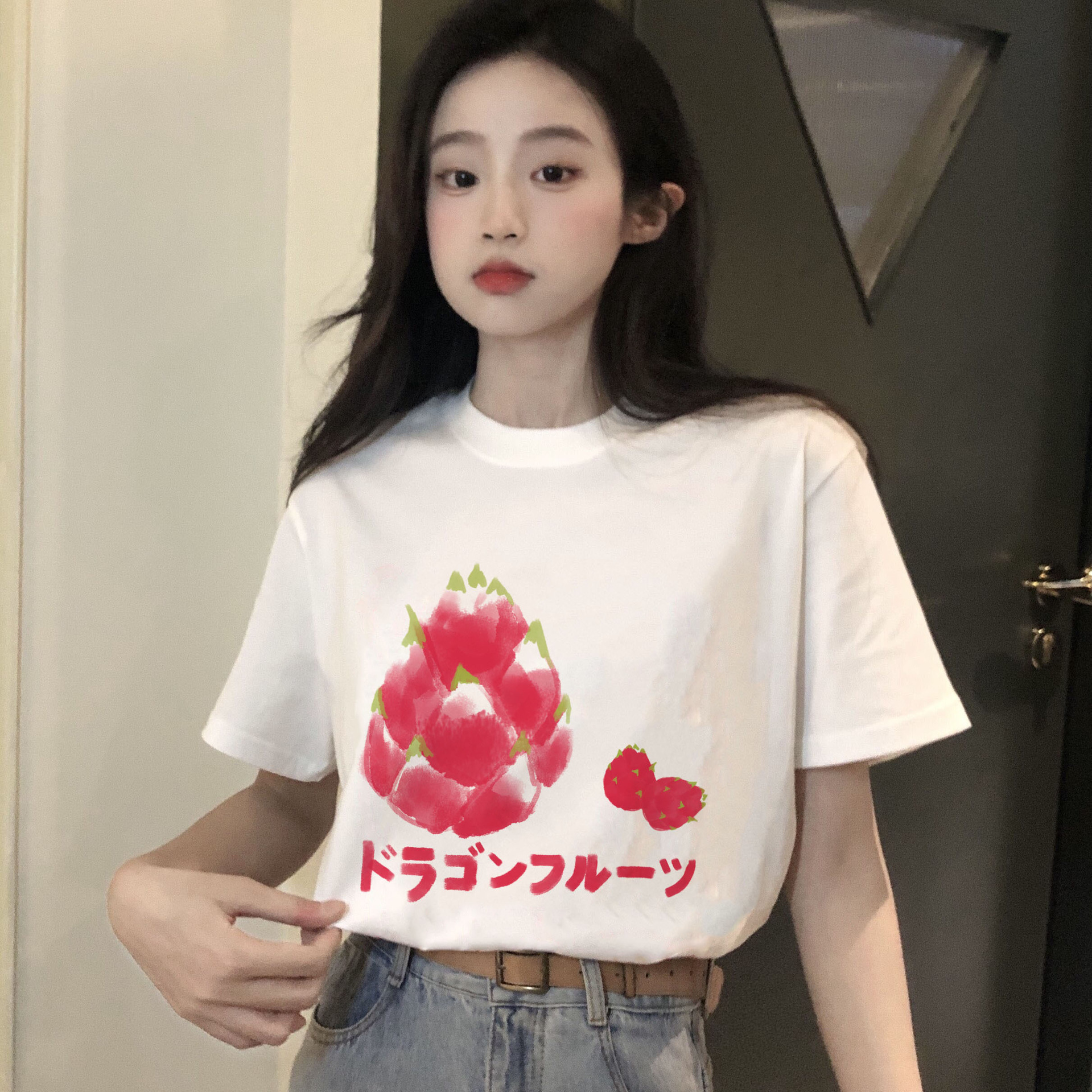 大衆デザイン感火龍果プリントtシャツ女性夏の新型ins潮牌ゆるい親友服半袖服