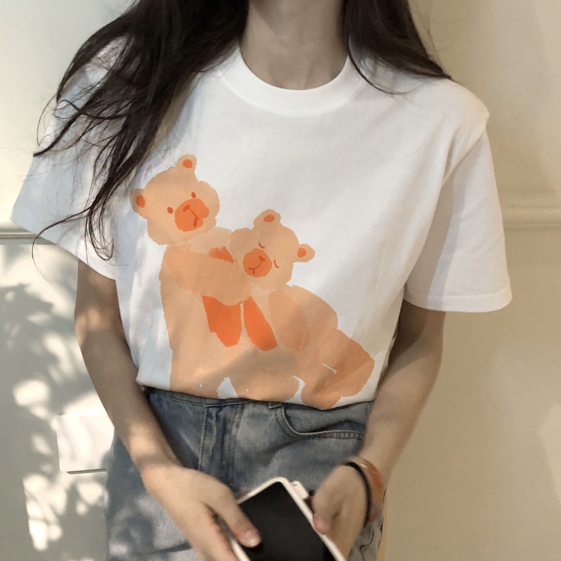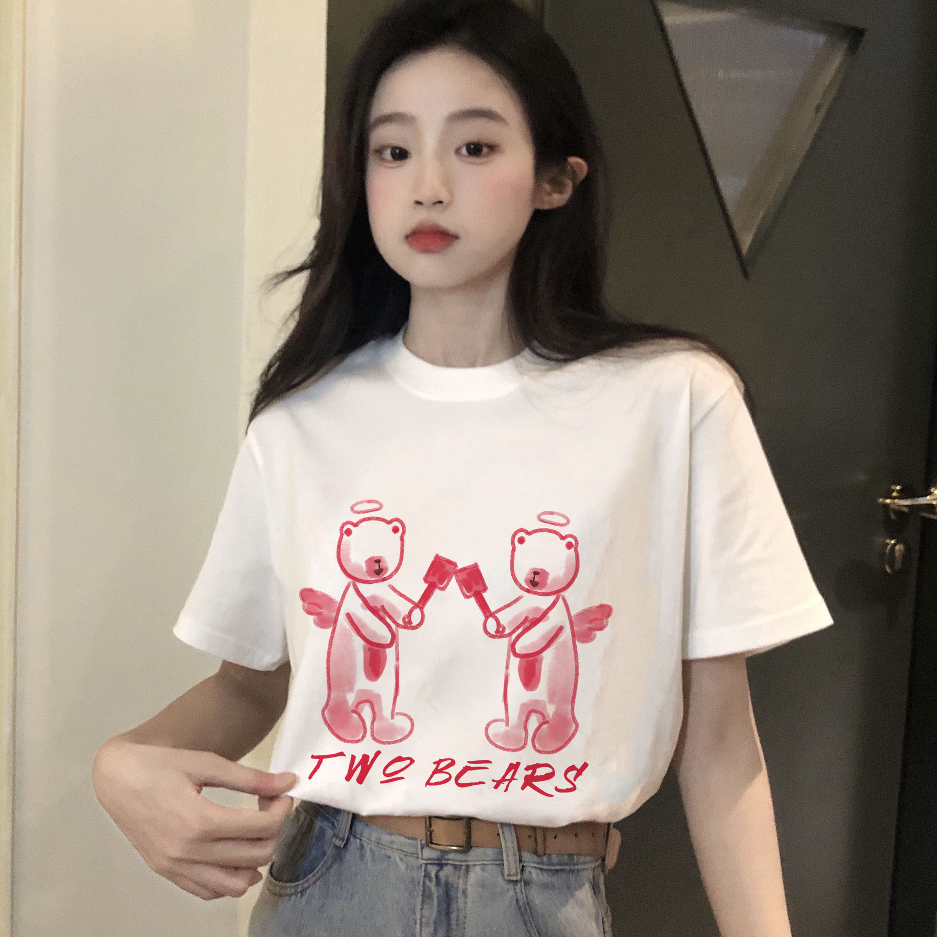 卸売り純綿半袖2022新型tシャツ女性夏の丸襟シャツの中に港味chi上着が似合います。