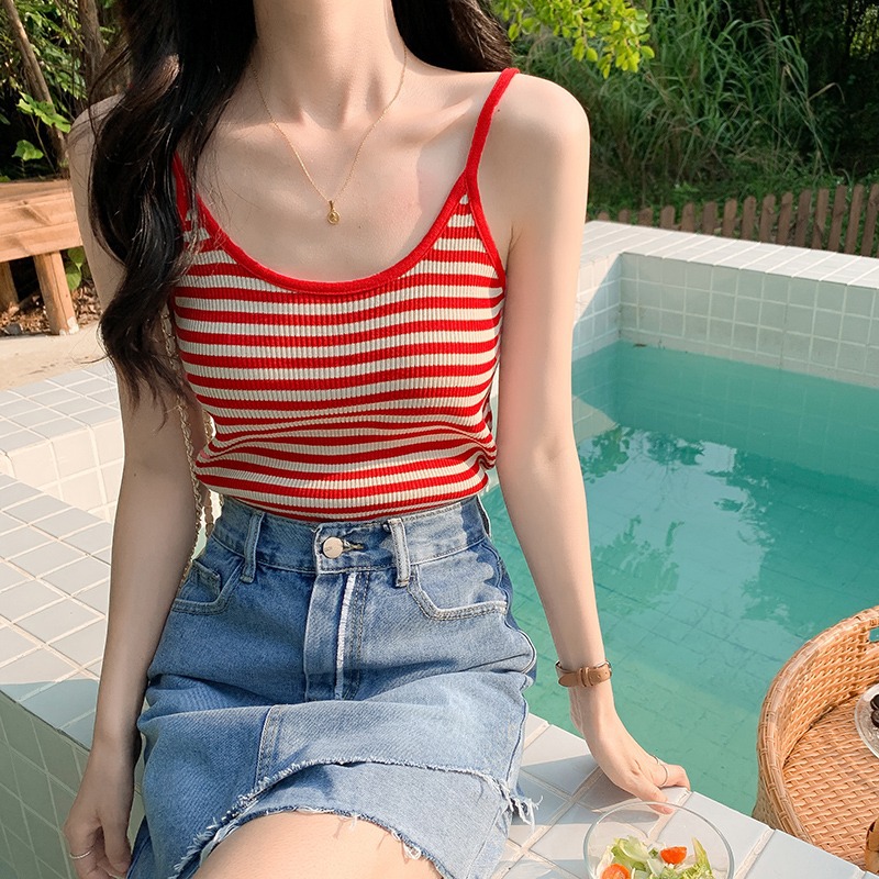 スリムなストライプの小さいベストのストラップの女性の夏のデザイン感の小さい衆の2022年の新型のフランスの中でノースリーブの上着を掛けます。