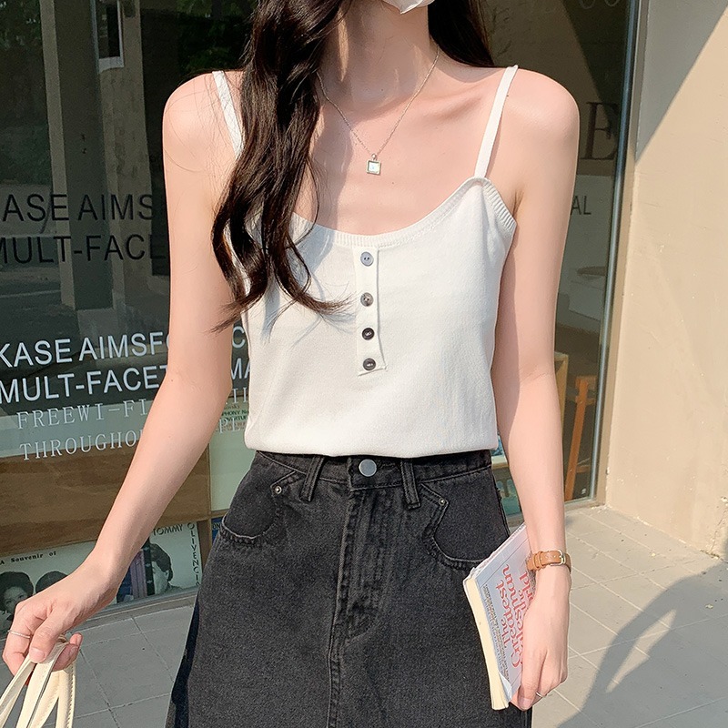 ニットキャミソールレディース夏アウターinsデザインセンス小众セクシー美バックスーツインナーノースリーブトップスレディース