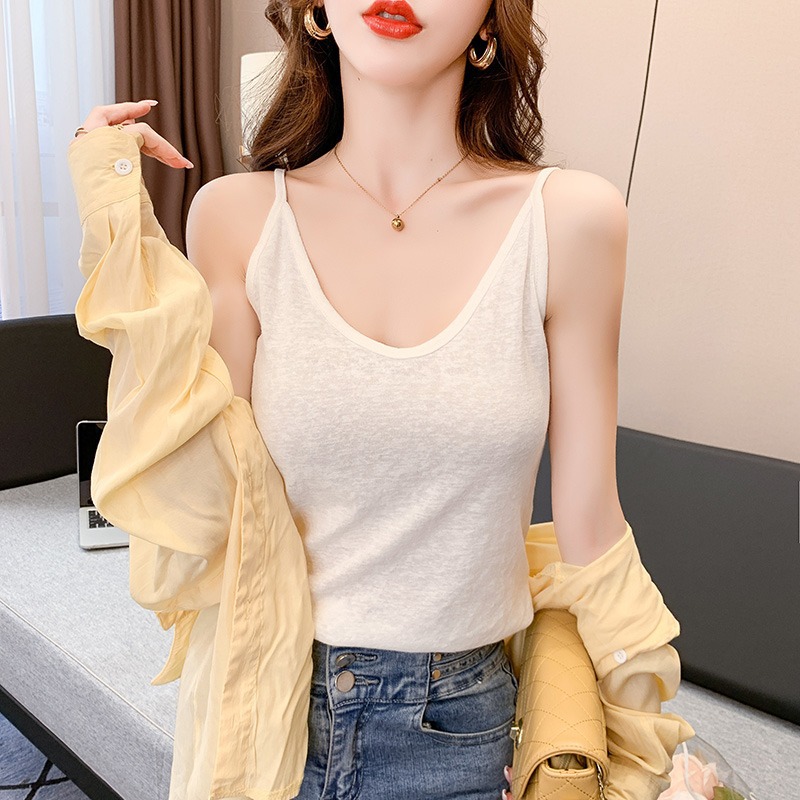 Vネックのストラップの女性の中に夏の氷の薄いタイプのゆったりしたノースリーブの上着の白い綿麻を掛けて底の小さいベストを打って外に着ます。