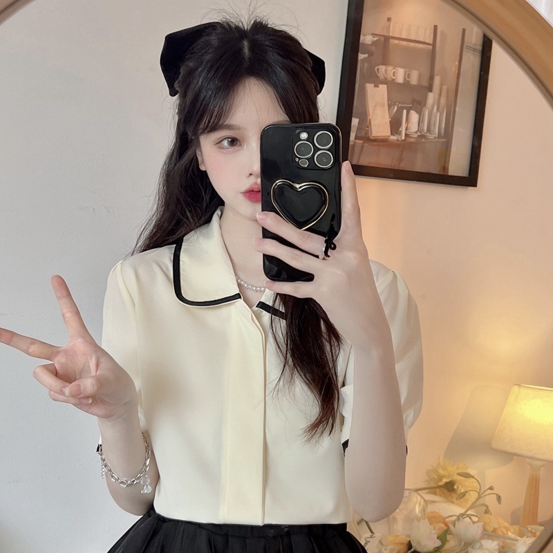 学院風jkシャツ女2022夏新デザイン感小衆白半袖シャツ日系ショートコート