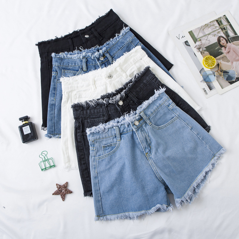 黒いデニムのショートパンツを卸売りします。女性2022新型夏高腰a字ワイドパンツのゆったりしたストレートパンツのホットパンツです。