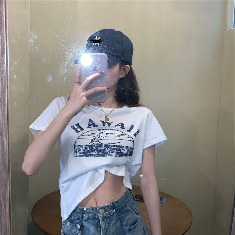 Ins超火網赤半袖tシャツ女2022韓版潮原宿風短スタイルガードルシック港味上着