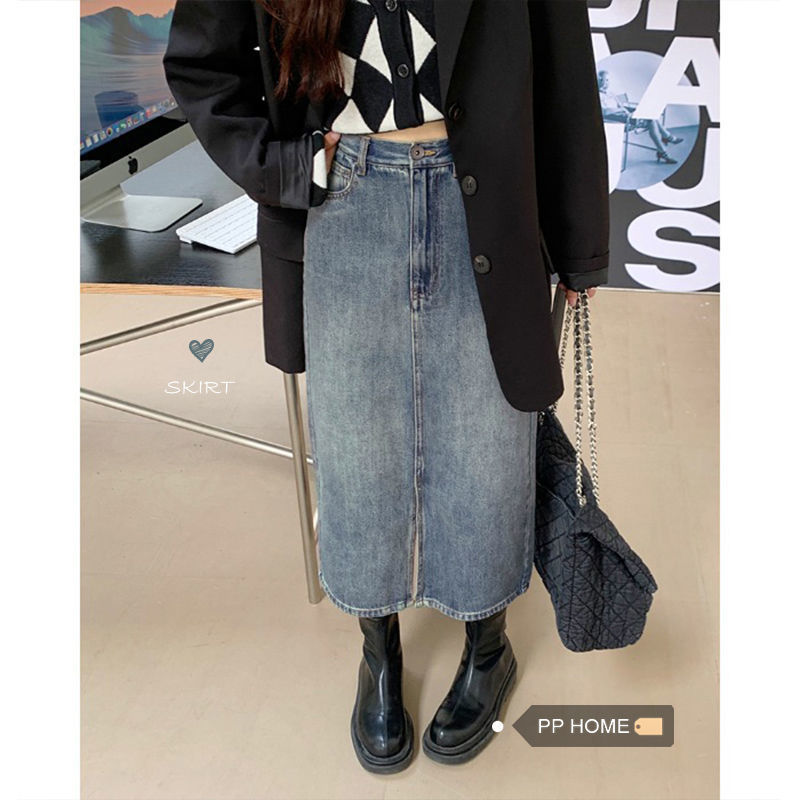 香港風chiハイウエストデニムスカート女性春秋韓国版大サイズ太ったmm学生塩系包尻a字ロングスカート