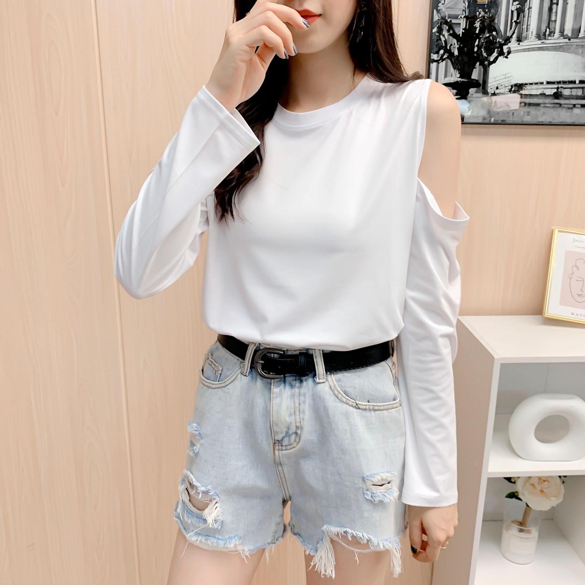 フォークの上着の女性のデザイン感の薄いタイプの修身ギャルの長袖の早秋の不規則でやせているショートタイプの底のシャツのtシャツ