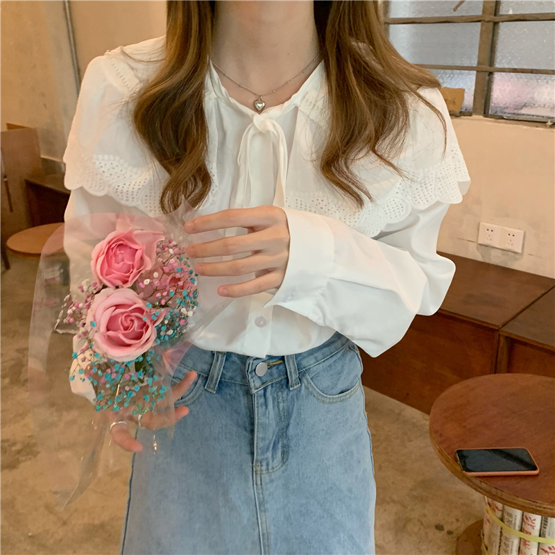 子供の襟の白いjkのシャツの女性の秋の新型の学院の香港風の質感の大きいサイズの太っているmmのデザイン感の小さい大衆の独特なシャツ