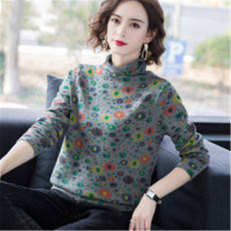 秋冬の女性のベルベットの半高襟のシャツの大きいサイズの太ったmm長袖tシャツの女性の洋気の修身洋気の上着