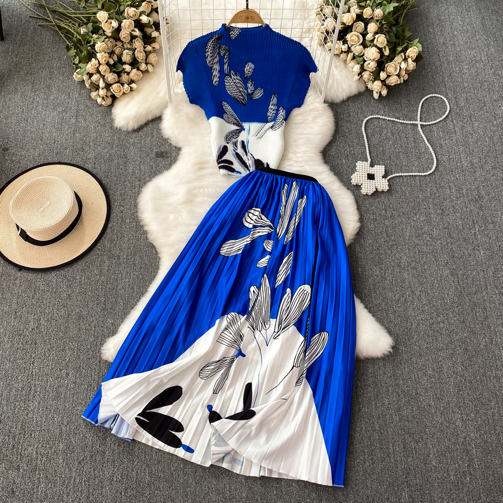 軽熟風復古気質半袖襟折り腰痩せa字シフォンシャツワンピース優雅なロングスカート