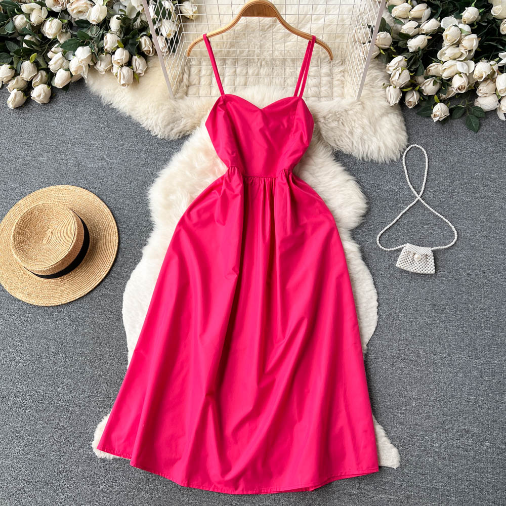新商品の大衆高級感のストラップは胸のワンピースの女性のフランス風の気質の中の長いタイプは腰を緩めてやせている女性のスカートを現します。