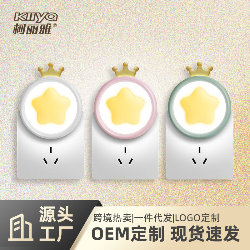柯麗雅光控led感応星皇冠コンセント小夜灯寝室ベッドサイド添寝灯プレゼントお土産