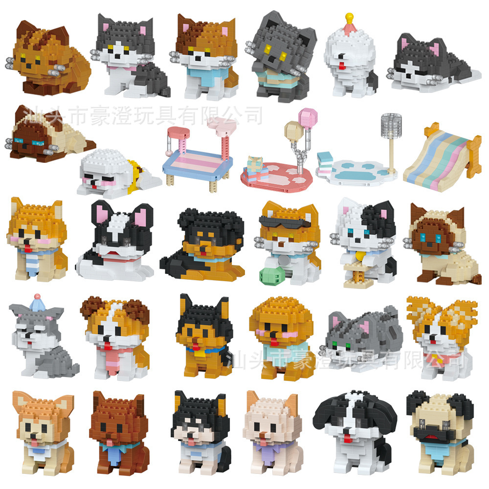 猫と犬の漫画ペット人形ビルディングブロックレゴ子供の教育用組み立て装飾品ギフト卸売と配送と互換性があります